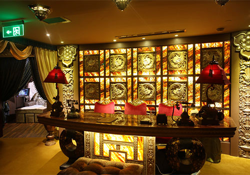 美容美发整个风格以泰式皇家风情为主调,从装修的风格到服务项目的配置,加上一整套严谨的管理体系,独特的美容抗衰老泰式皇族养身模式,先进的美发设备及长发SPA秀丽养护,所有的一切,都散发着诱人的魅力,是酒店经营中永续成功的风范。